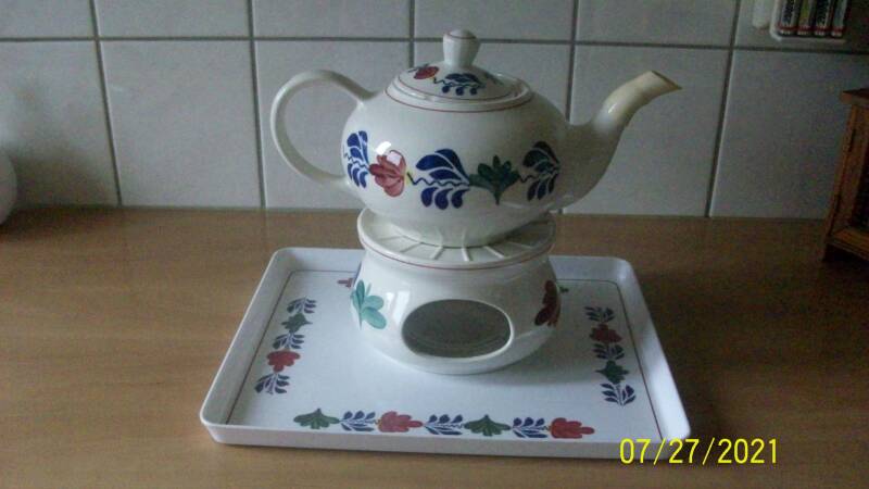 Boerenbont dienblad, theelicht en theepot 22,50€