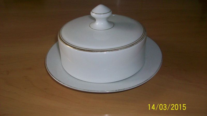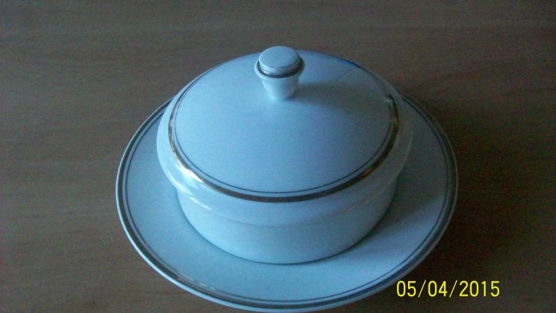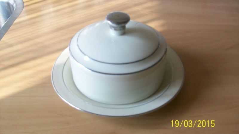 Ovale porseleinen botervloot van PULS met haarscheurtje 8€