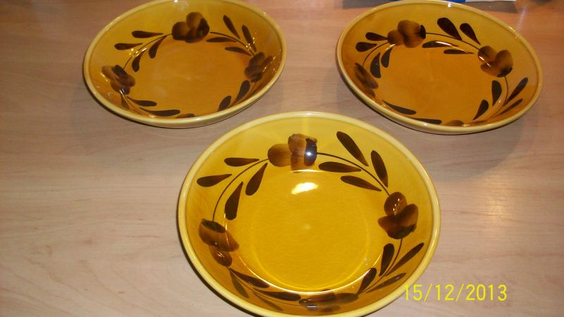 3 Geelgekleurde boerenbont papbordjes 7,50€