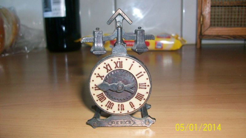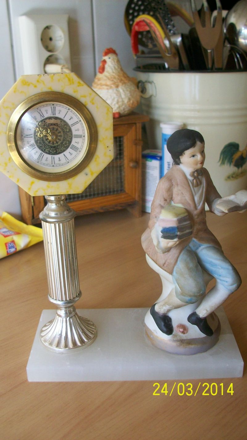 Klok op zuil met lezer ernaast op marmeren plaat 20€