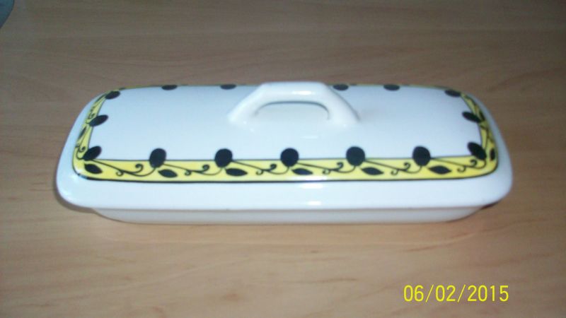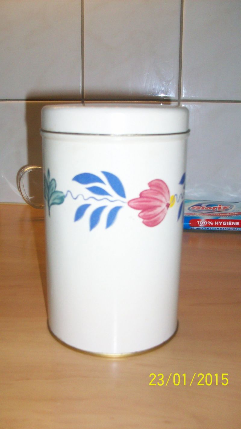 Mooi, oud voorraadblik met boerenbont motief van Boch 10€