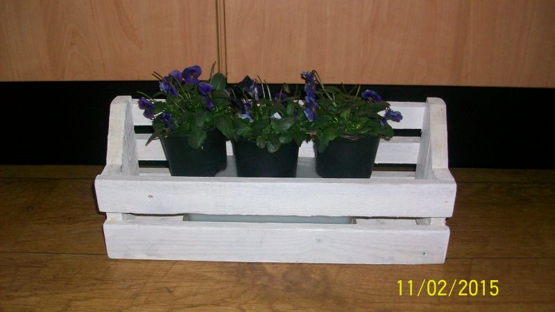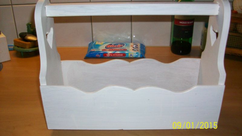 Wit houten plantenbakje/opbergbakje met handvat 10€