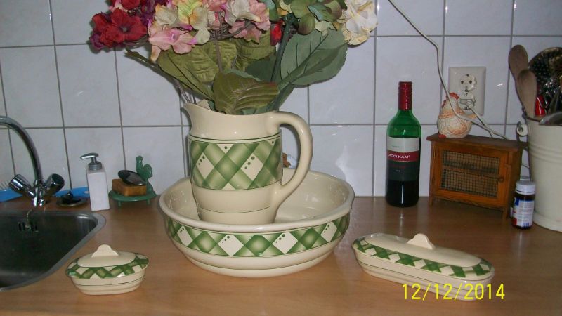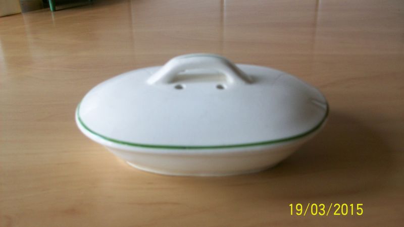 Brocant zeepbakje met groene rand chippie af 7,50€